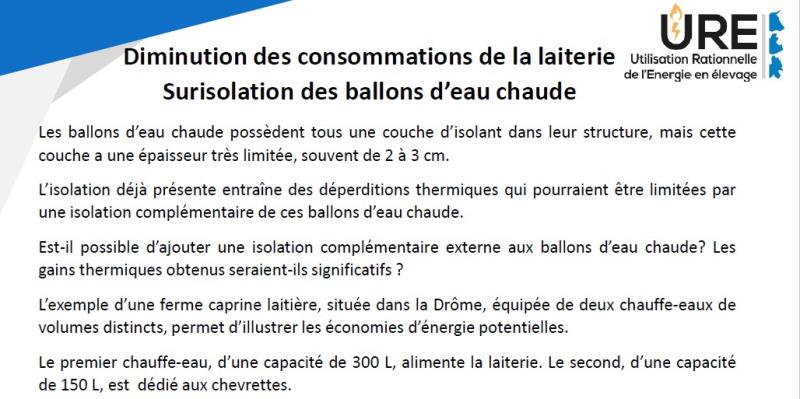 La surisolation des ballons d´eau chaude permet de limiter les déperditions thermique et réaliser un gain énergétique. Synthèse produite par IDELE dans le cadre du projet URE 2030 (Utilisation Rationnelle de l´Energie)