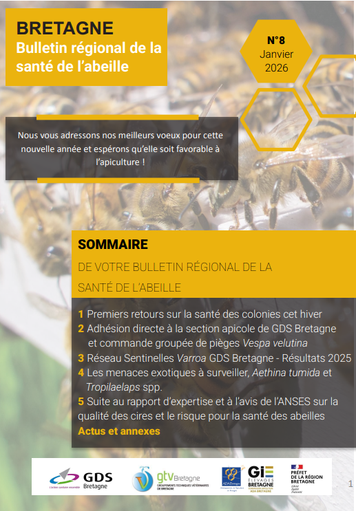 Au programme : - premiers retours sur l´hiver 2025-2026 - adhésion directe à la section apicole de GDS Bretagne - résultats 2025 du réseau Sentinelles Varroa de GDS Bretagne - point sur les menaces exotiques à surveiller : Aethina tumida et Tropilaelaps spp. - suite au rapport d´expertise et à l´avis de l´ANSES sur la qualité des cires et le risque pour la santé des abeilles - actus